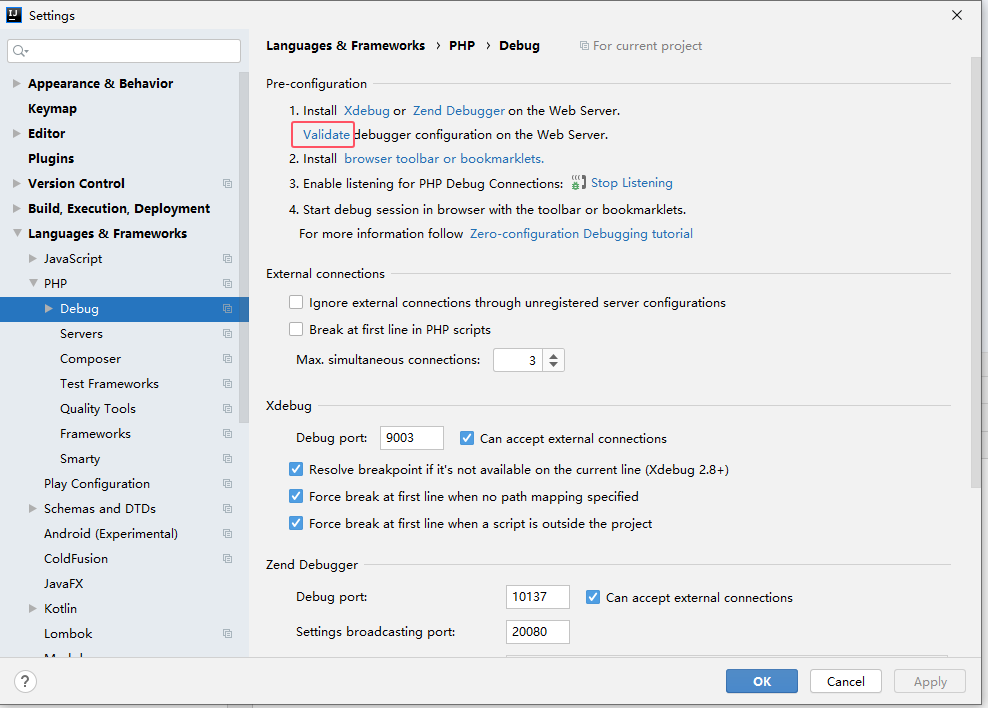 别搞错了,在我看来是一大坑。我当初就是误以为在C:\wamp64\bin\php\php8.3.0\php.ini里面,导致一直不生效。在idea的validate debugger里,也有提示php.ini生效配置目录。